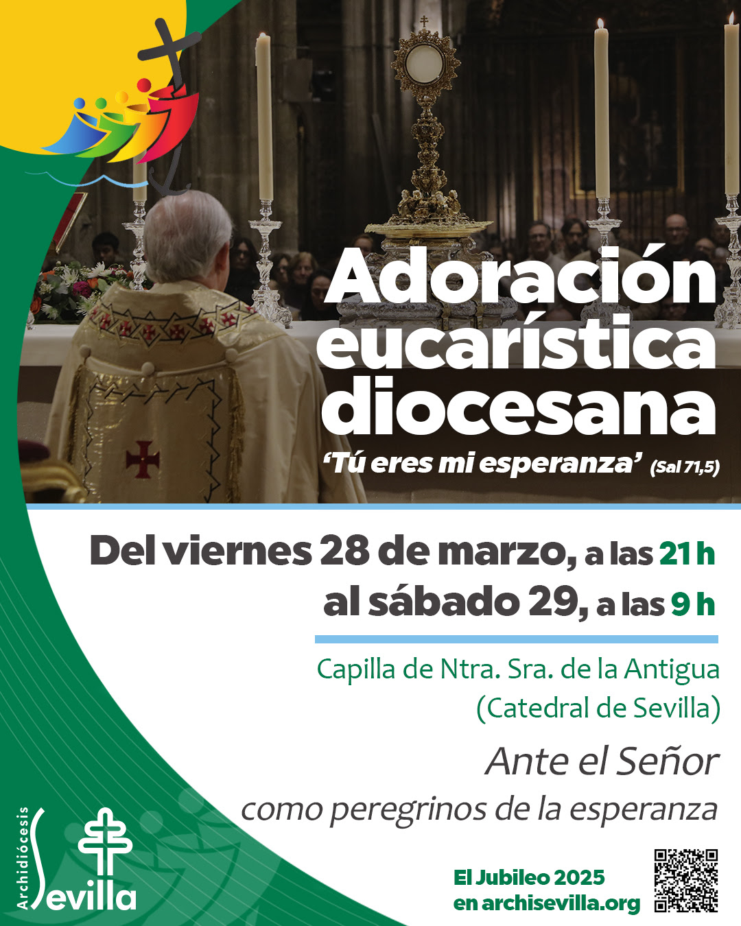 La Capilla Real de la Catedral de Sevilla acogerá desde el viernes 28 de marzo, a las nueve de la noche, hasta el sábado 29, a las nueve de la mañana, la Adoración Eucarística Diocesana ‘Tú eres mi esperanza (Sal 71,5)’.