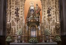 El Señor en el Altar Mayor y la Virgen en la Capilla Sacramental.