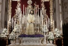 Para una mejor contemplación por parte de los hermanos y devotos, la Virgen...