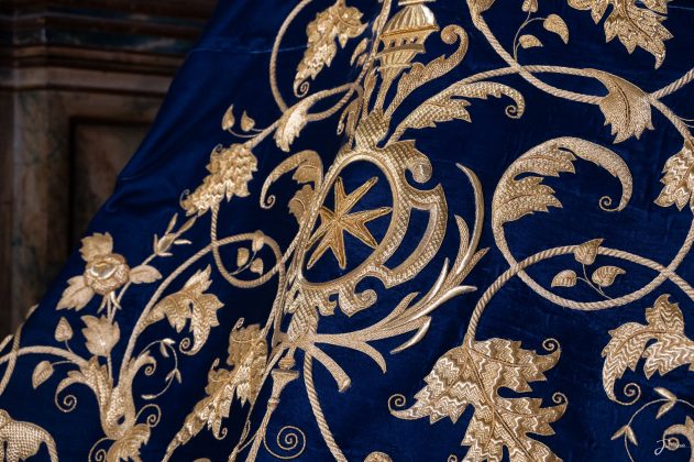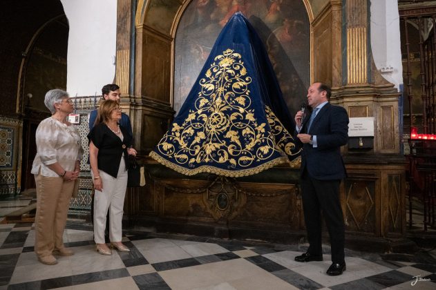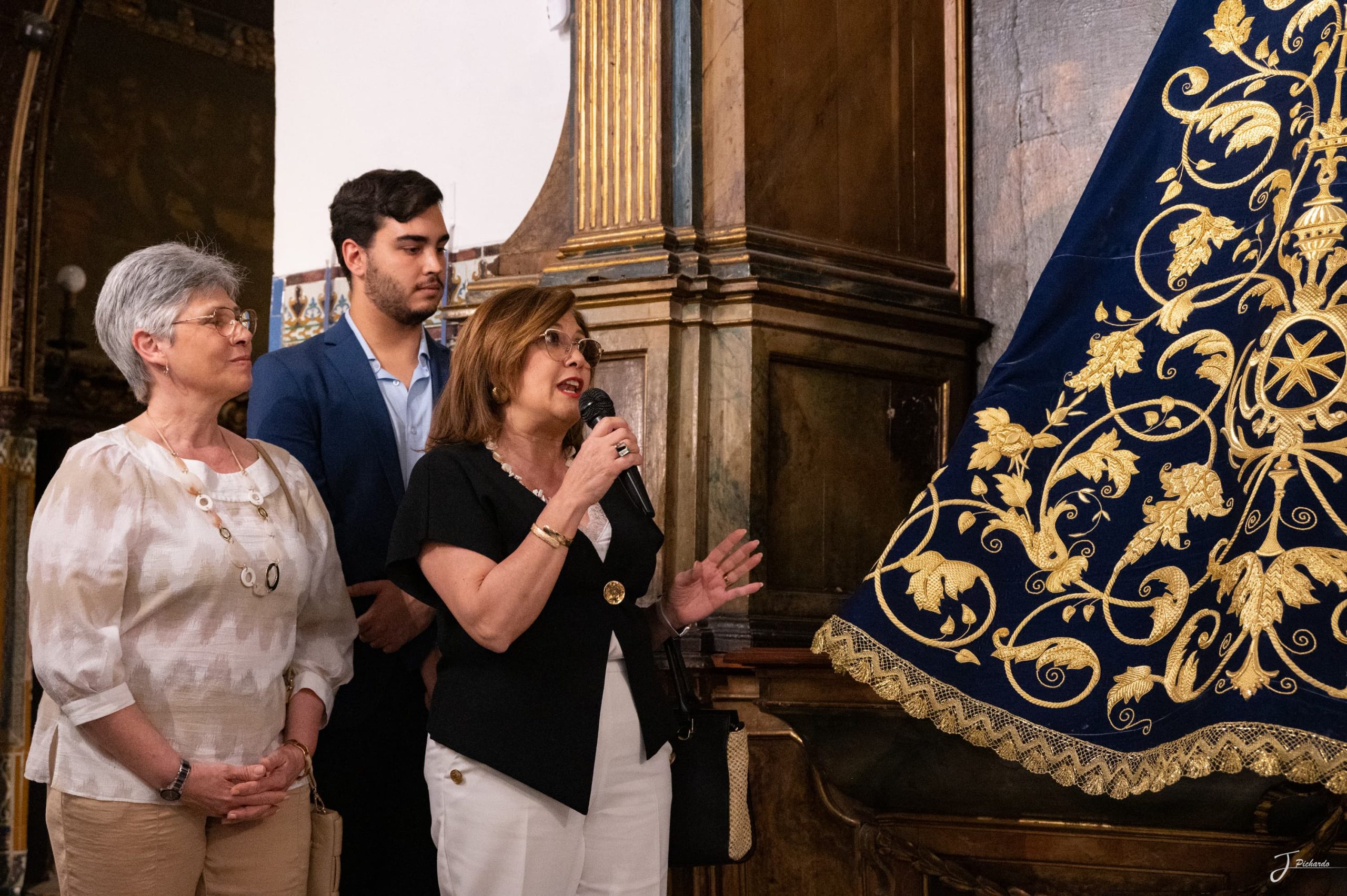 Tras el cabildo general ordinario celebrado en la noche del 19 de mayo en San Juan de la Palma, se procedió a la presentación del enriquecimiento del manto azul de la Santísima Virgen.