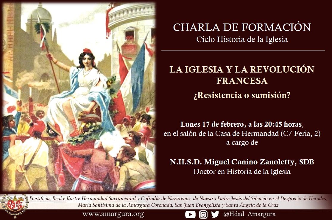 La siguiente cita tendrá lugar el lunes 17 de febrero, a las 20:45 horas, de la mano nuevamente de nuestro hermano salesiano D. Miguel Canino. En esta ocasión, la charla se titula «La Iglesia y la Revolución Francesa, ¿Resistencia o sumisión?».