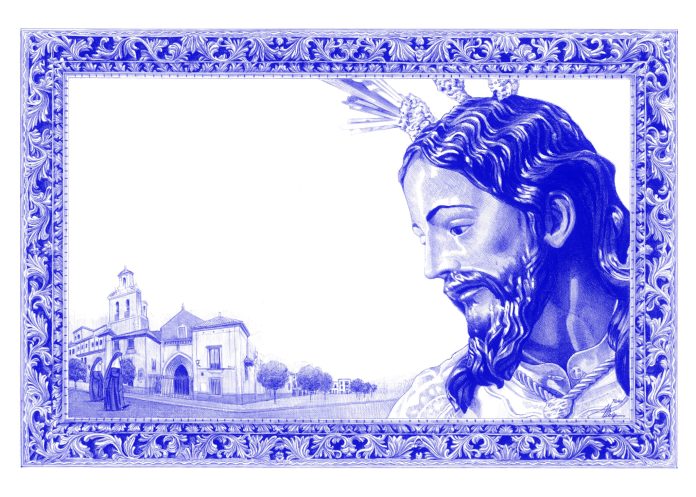 Se trata de una obra a bolígrafo del artista D. Javier Jiménez Sánchez Dalp, la cual representa un primer plano del rostro del Señor, mostrando al fondo el templo de San Juan de la Palma, al que nuestra hermandad llegó hace 300 años.