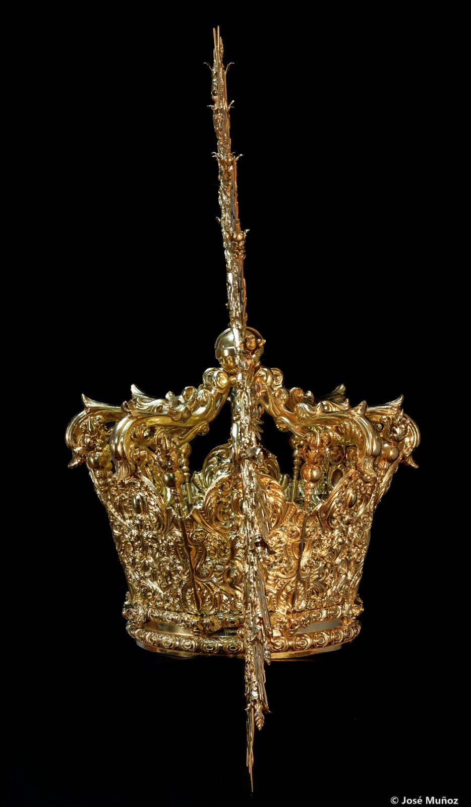 La pieza de plata sobredorada destaca por su novedoso dibujo, de cuidados y menudos detalles, a diferencia de la presea que existía por aquel entonces, caracterizada por el esquema de una abundante y carnosa decoración floral. Uno de los detalles que marca a la corona en un primer golpe de vista es la estilizada forma con la que se remata la ráfaga. Este peraltamiento de la forma viene marcado por la disposición del orbe con la cruz, que no culmina el conjunto, sino que se dispone en el centro de la composición, cambiando la percepción de la tradicional forma circular.