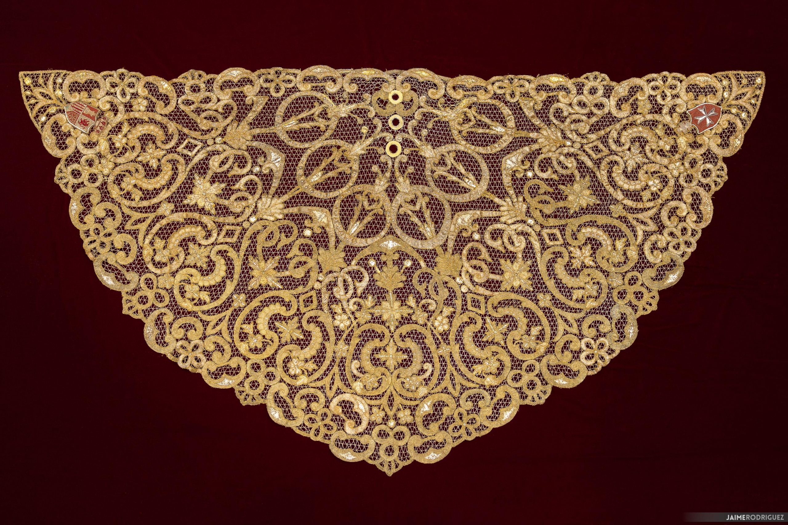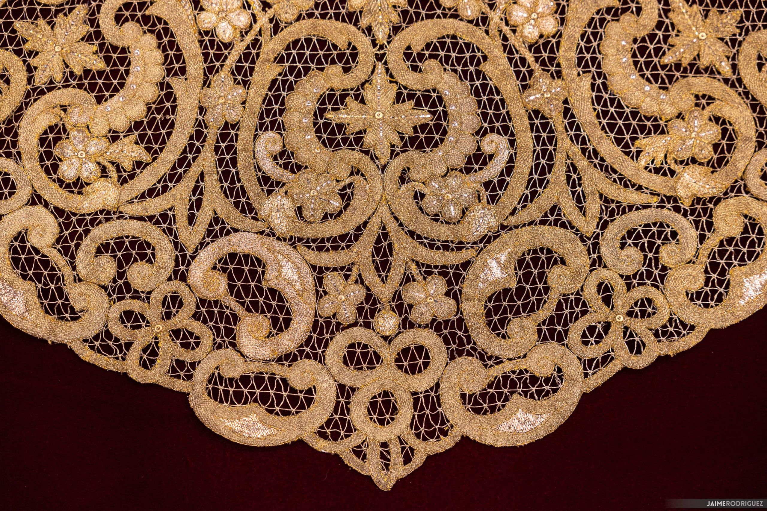 Una de las novedades patrimoniales que presentará la Hermandad en estos próximos cultos extraordinarios será la restauración de la toca de sobremanto de María Santísima de la Amargura.