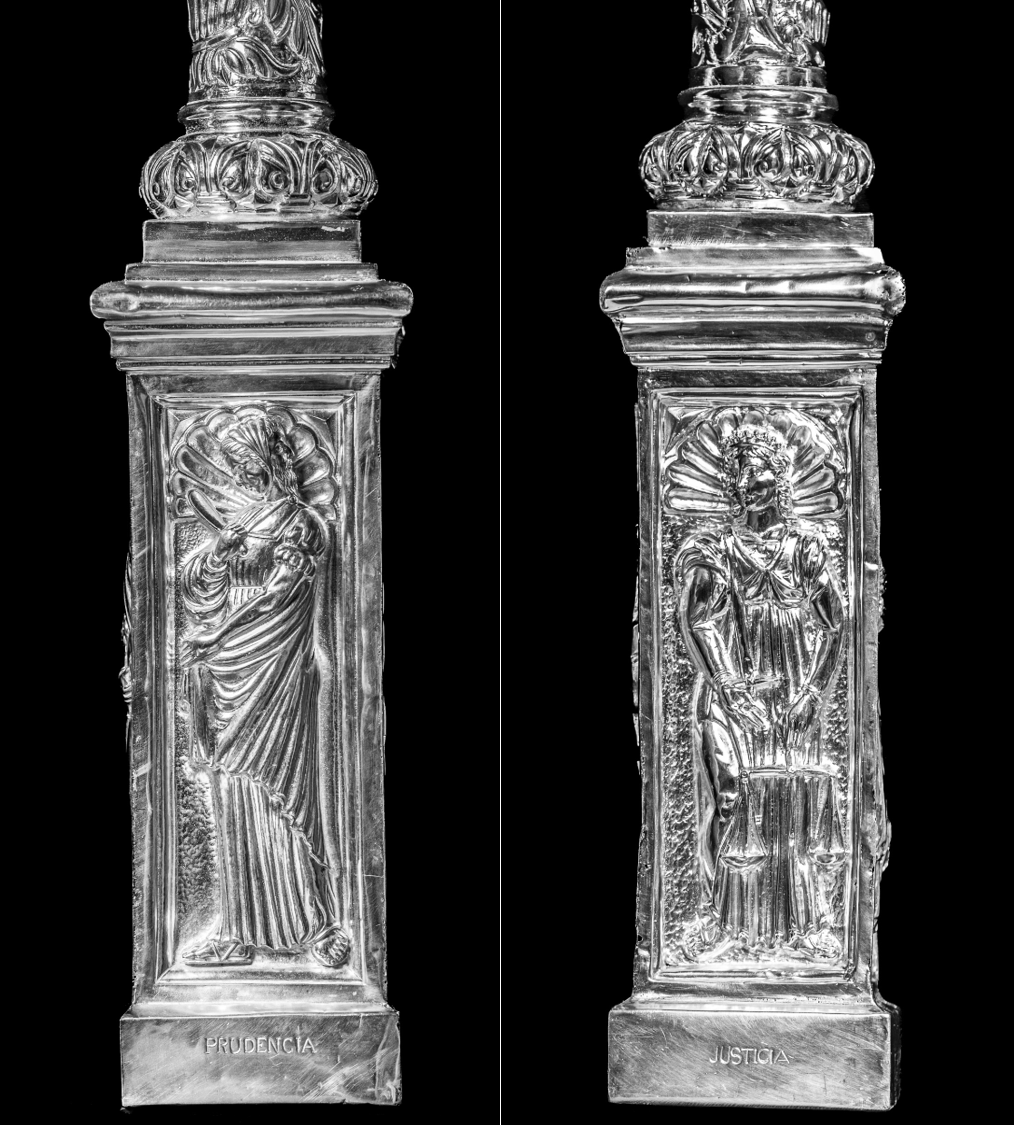 Doce varales, ejecutados por Cayetano González en plata de ley. De basamento cuadrangular, en los que se puede ver en las caras exteriores, el colegio apostólico formado por San Bartolomé, Santiago el Menor, San Pablo, San Mateo, San Judas Tadeo, Santo Tomás, San Juan, San Felipe, Santiago el Mayor, San Andrés, San Simón y San Pedro. Las tres caras restantes tienes motivos geométricos a excepción de los cuatro varales maestros que representan en sus caras frontales las virtudes cardinales: la templanza, la fortaleza, la justicia y la prudencia. Cada varal está dividido en siete tubos con macollas entre ellos y terminando en perilla.