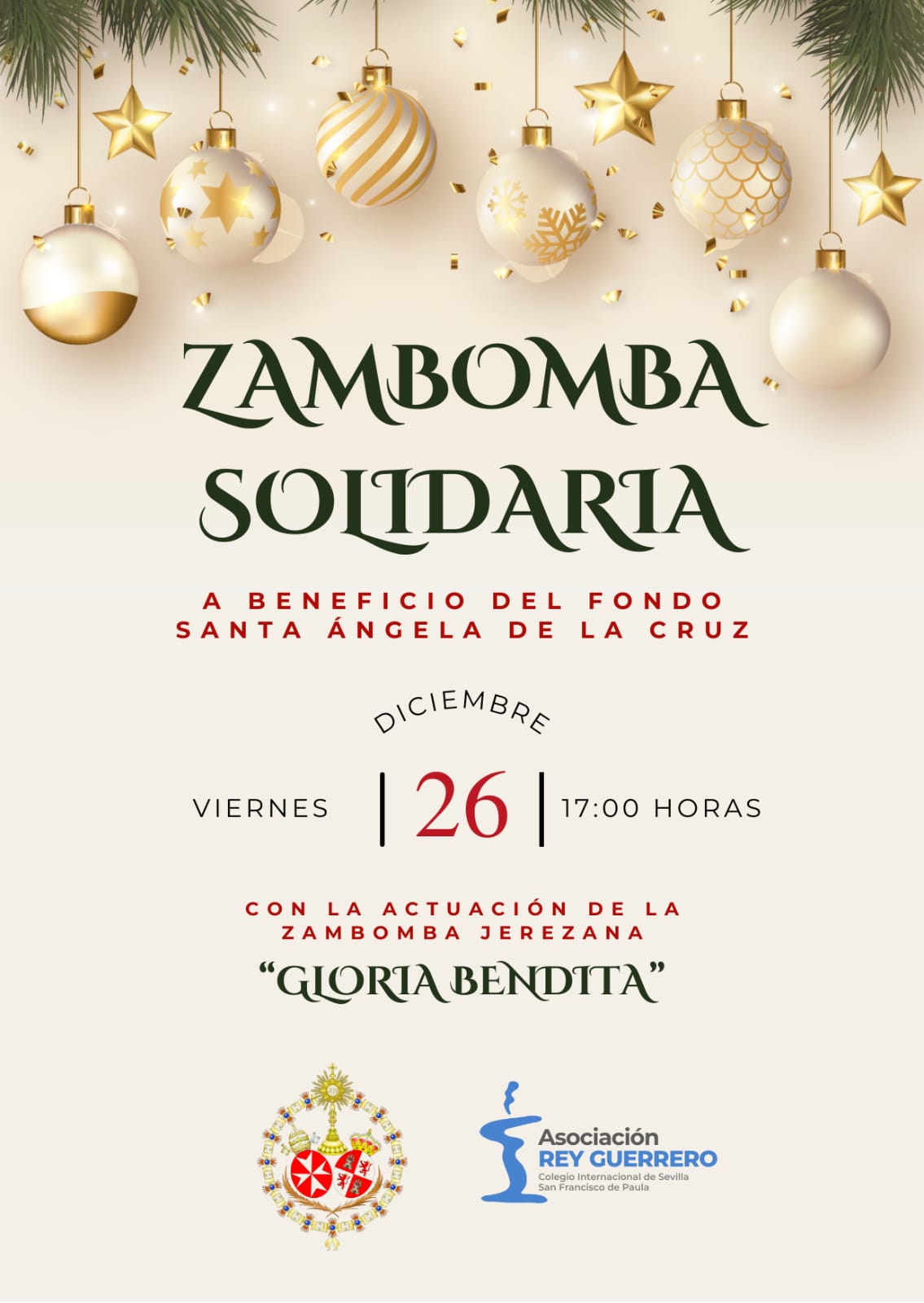 El viernes 26 de diciembre, de 16:30 a 19:30 h., en las instalaciones deportivas del Colegio San Francisco de Paula, la Hermandad celebrará una Zambomba solidaria a beneficio del fondo Santa Angela de la Cruz.