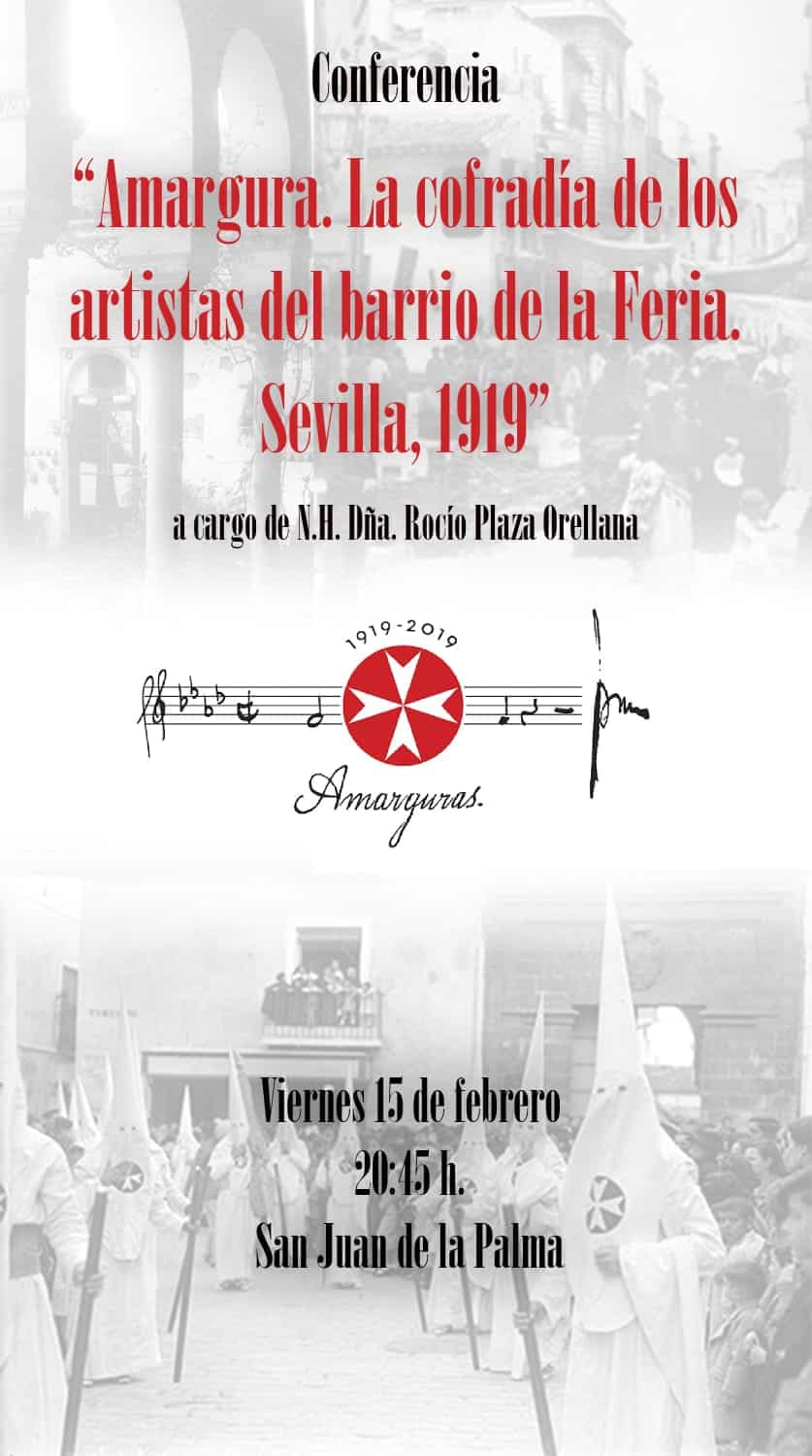 centenario de la Marcha «Amarguras». Así, NH Dña. Rocío Plaza Orellana disertará sobre «Amargura. La cofradía de los artistas del barrio de la Feria. Sevilla, 1919».