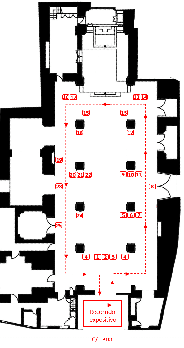 Se encontraron expuestas, entre otras piezas, la cruz de guía (1941), el techo de palio (1926), San Juan Bautista adulto (S. XVIII), la saya de tisú de oro de la Santísima Virgen (2007), varal del paso de palio (1929), juegos de incensarios y navetas (1947), canastillas de diputados (1946), respiradero frontal del paso de misterio (1938), o las bocinas de ambos pasos (1916 – 1931).