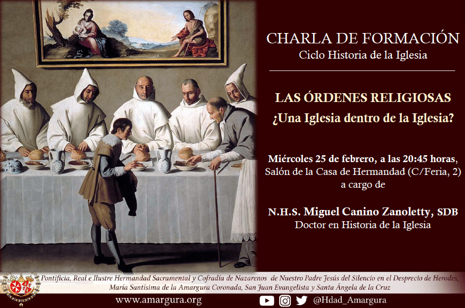 En esta ocasión, bajo el título «Las órdenes religiosas ¿Una Iglesia dentro de la Iglesia?», la sesión formativa tendrá lugar el miércoles 25 de febrero, a las 20:45 horas. En la misma se abordará la cuestión de la vida religiosa, comprendiendo cómo y de qué manera ha estado presente en la Iglesia a lo largo de los siglos, y qué puede decirnos hoy.