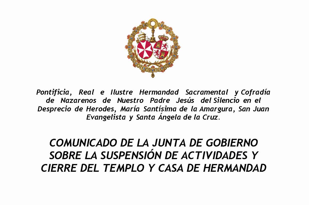 Debido al actual estado de alarma y, en consecuencia, al cese de las actividades presenciales en la Hermandad, el plazo estipulado para devolución de túnicas propiedad de la Hermandad queda anulado.