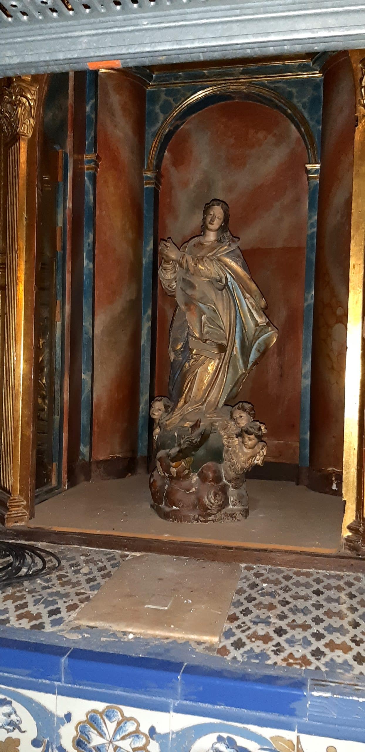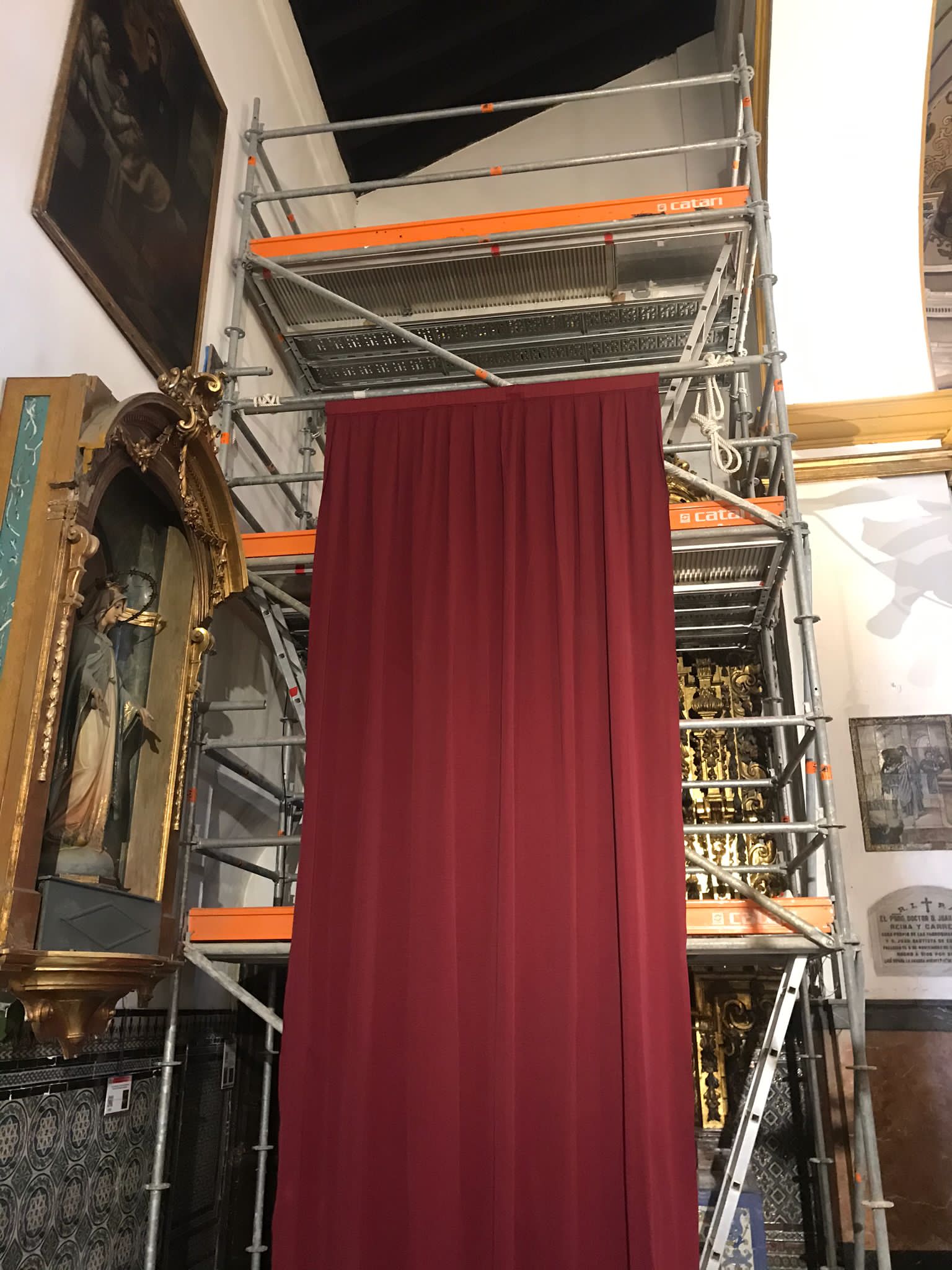 En este mes de agosto han comenzado los trabajos de restauración del retablo que encabeza la nave del Evangelio de San Juan de la Palma, dedicado a la Virgen de la Antigua.