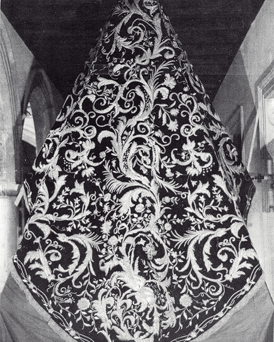 Manto de Joaquín Díaz de1890 que hoy en día posee la Virgen del Pasmo, de Bollullos Par del Condado.